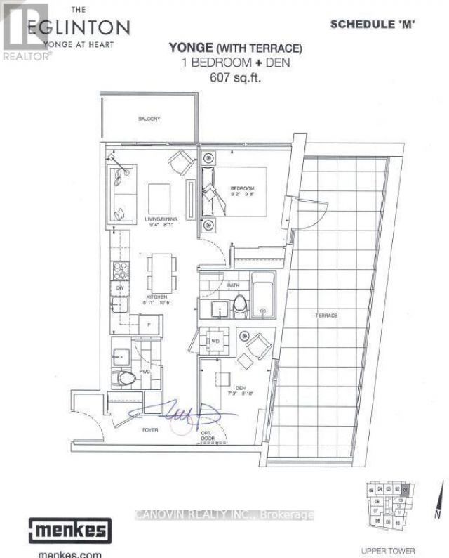 The Eglinton by Menkes with midtown convenience for everything. Rarely offered one bedroom +den with a huge terrace accessible Den and Bedroom, with floor-to-ceiling windows Terrace facing north and east with a gorgeous view. The den is bedroom size with the door, Party Room, Theatre, Patio, BBQ, Kids Play Room, Billiards Room, Wireless Studio & Pet Washdoor. Elementary schools and Secondary Schools are within walking distance.Shops, Grocery, Parks, And TTC. Building Amenities - Guest Suites, Gym,Station! (id:52350)