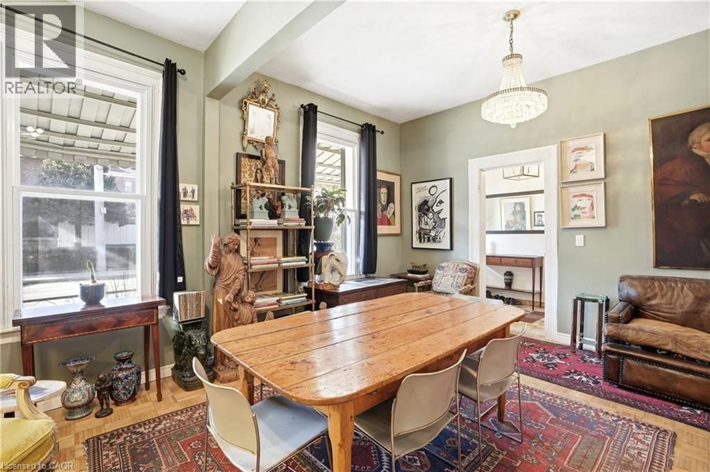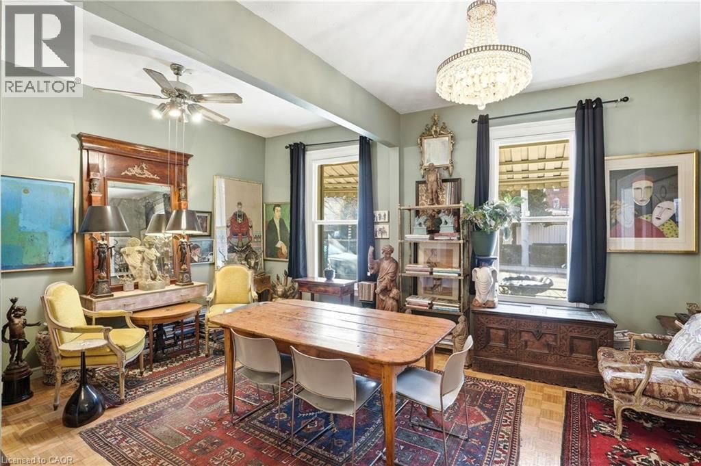 A rare opportunity to own a spacious registered detached home in the heart of downtown Hamilton, offering 4 bedrooms, 2 full bathrooms, & over 1,500 sq ft above grade living space. The bright eat-in kitchen provides plenty of room for daily living, while the oversized living and dining areas impress with soaring 10-foot ceilings, abundant natural light, & original parquet flooring adding warmth and character. A freshly painted interior enhances the airy feel, & newly finished wood stairs throughout keeps maintenance simple. Step outside to a level backyard with ample space for entertaining, gardening, or relaxing in your own private outdoor setting. Upstairs, 9-foot ceilings continue the sense of openness across four well-proportioned bedrooms & a full 4-piece bath, offering flexibility for families, guests, or a home office. The partially finished lower level features a cozy rec room, another 4-piece bathroom, along with additional storage & over 350 sq ft of unfinished space ready to customize to your needs. Solid all-brick construction, currently sided for added insulation, speaks to the home's durability & long-term value. Ideally located just minutes from Bayfront Park, Pier 4 Park, Jackson Square, the waterfront trails, & West Harbour GO, this property offers walkability, convenience, & easy highway access for commuters. With generous square footage, timeless character, & a location that continues to grow in demand, this is an opportunity you won't want to miss. (id:52350)
