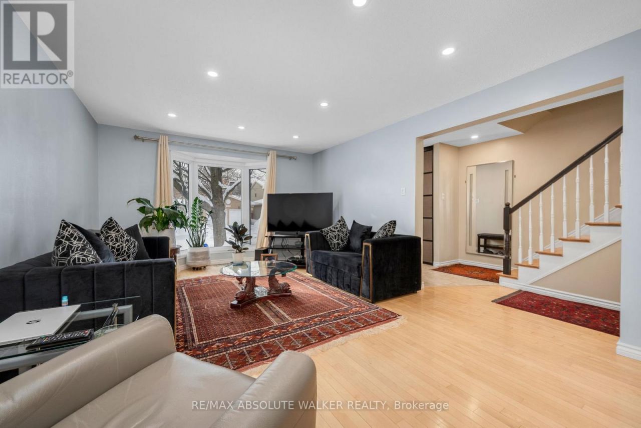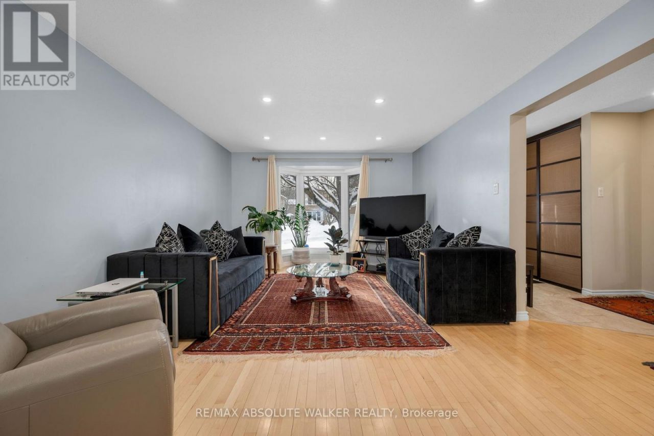 This spacious 4+1 bedroom, 4 bathroom corner-lot home offers exceptional comfort in the family-friendly neighbourhood of Chapel Hill, just a short walk to transit, the NCC trail network and the local park. The main level features an open concept living and dining area with hardwood flooring and abundant natural light, a bright and generous kitchen with stainless steel appliances with open views into the family room with a wood fireplace, along with main floor laundry, a side entrance and inside access to the double garage. The second level is ideal for a growing family with four well-sized bedrooms including a primary suite with walk-in closet and three-piece ensuite, plus updated bedroom windows and closet doors. The lower level provides excellent bonus space with a finished recreation room, an additional bedroom, a two-piece bathroom, a cedar closet and ample storage. Hardwood floors span the first and second levels, with tile in key areas and laminate in the basement. Recent updates include the roof in 2015, a newer garage door and an updated deck. The large corner lot offers mature trees and a private backyard, and the location is close to schools, parks, trails and everyday conveniences, making it an outstanding family home. (id:52350)