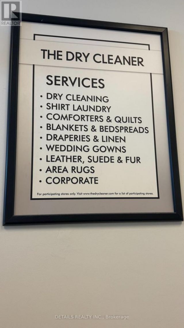 Excellent Dry Cleaning Business with great traffic. Business is located inside the Loblaws (Ogilvie & Blair), successfully operating, with regular clients for more than 18 years. Great potential for making addition income for those familiar with alteration / tailoring. Rent $750+Tax includes Heating / Cooling/ Electricity. (id:52350)