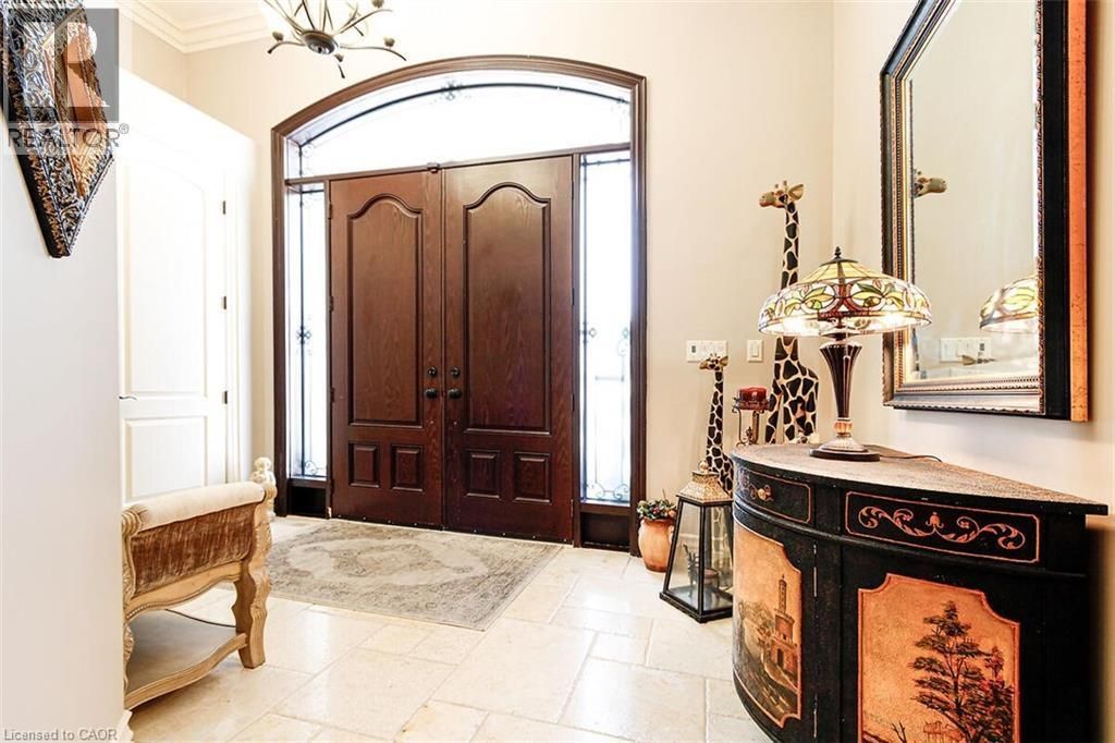 Welcome to this exceptional custom-built executive bungalow with over, perfectly positioned on a quiet cul-de-sac overlooking tranquil green space leading to the Grand River. Over 3800 sq ft of living space. This remarkable residence is ideal for multi-generational living or an in-law suite setup. At the heart of the home is a chef-inspired kitchen created for both culinary excellence and entertaining. Featuring premium Thermador stainless steel appliances ? the luxury brand of choice ? including a gas range with grill, this space offers limitless cooking potential. A remote-controlled skylight above the breakfast bar fills the kitchen with natural light, creating a warm and inviting gathering space for family and guests alike. The impressive Great Room showcases soaring ceilings and a dramatic floor-to-ceiling stone fireplace, delivering a sense of elegance and grandeur rarely found. Elevated 11-foot ceilings in both the Great Room and the primary bedroom further enhance the home's spacious, upscale feel. The primary suite serves as a private retreat, accessed through French doors and finished with engineered hardwood flooring and serene views overlooking the surrounding green space. The luxurious ensuite features granite countertops, double sinks, a glass-enclosed shower, and a relaxing jacuzzi tub designed for ultimate comfort. Travertine flooring flows throughout the main level. The fully finished lower level extends the living space with a sauna, wet bar, additional laundry area, and excellent potential for extended family living. Additional highlights include California shutters, crown moulding, and central vacuum. Perfectly situated near the Grand River Conservation Area, parks, local amenities, and a thriving business hub, with convenient access to the University of Waterloo, Wilfrid Laurier University, Conestoga College, and nearby schools. This exceptional home offers the perfect balance of luxury, nature, and convenience. (id:52350)