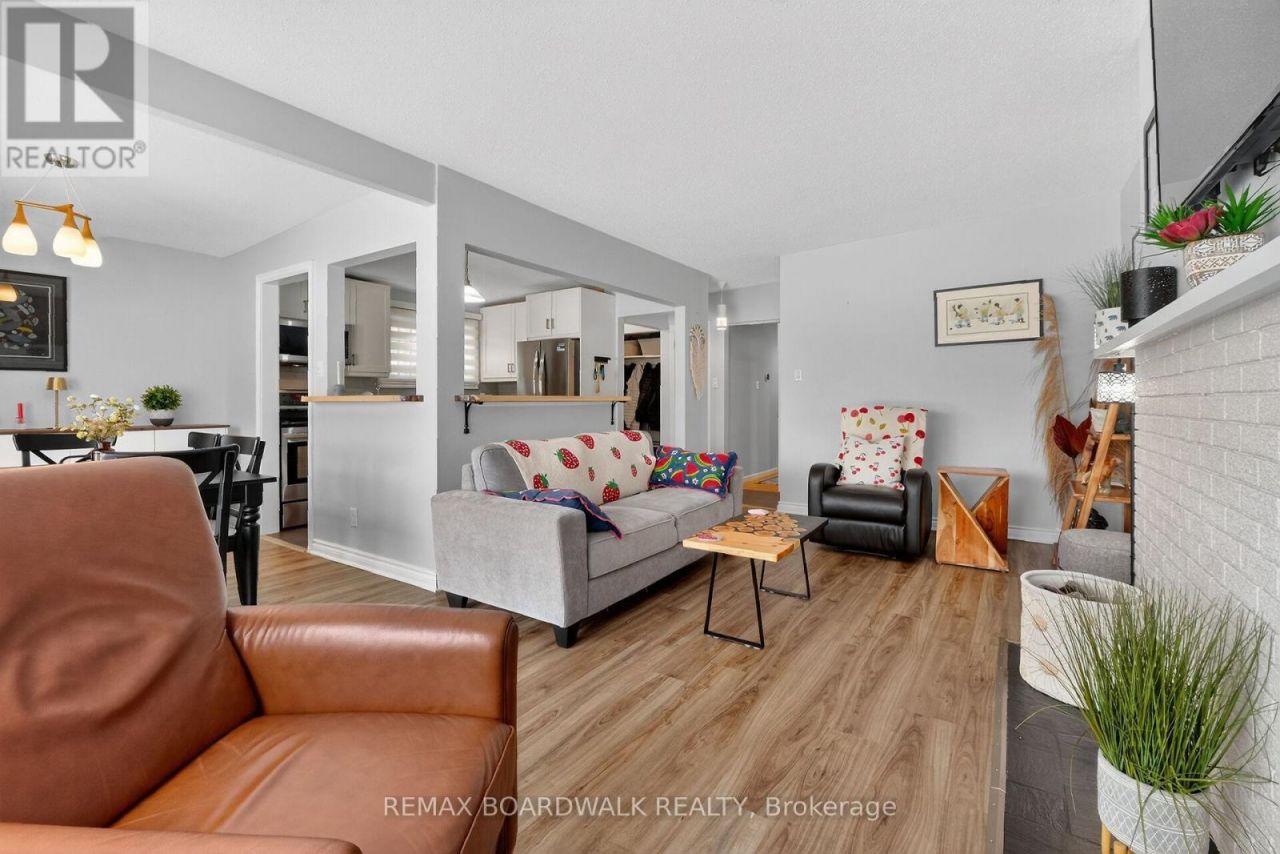 Welcome to this move-in ready bungalow located on a quiet street & just down the road from Hawthorne Park. The bright and open-concept main level offers a renovated kitchen (2024) with Quartz countertops, Stainless steel appliances, modern backsplash & handy pantry. From the kitchen you have clear views of your dining room with built-in cabinet and of your living room with a cozy gas fireplace surrounded by a classic brick wall. Moving down the hall you find 2 well-sized secondary bedrooms and a spacious primary bedroom with closet organizers along with an updated & magazine-worthy 5pc bathroom with Quartz countertops, dual sinks and stylish tiled shower. The lower level showcases a large family room with decorative wood-plank walls, a convenient den/office space with closet, a workshop area, laundry and storage room. This carpet-free home offers LVP in the main living area, hardwood floors in the hallway & bedrooms and laminate flooring in the basement. Your fully fenced backyard is your own little oasis surrounded by beautiful trees & hedges to give you peace & privacy. Here you find a sitting area with stone-pavers, a new pergola (2025) and custom shed. Other great updates and features include: Refrigerator & Dishwasher (2025), Furnace (2025), Fresh paint in main living area & ceiling (2025), Electric motorized privacy blinds (2025), Exterior pot lights (2025), A/C (2018), Nest thermostat and a 3-car driveway. This home is located close to both the CHEO & General Hospital, Trainyards Shopping Centre, St-Laurent Mall, Canada Science and Technology Museum, multiple parks, walking/biking trails & great schools! (id:52350)