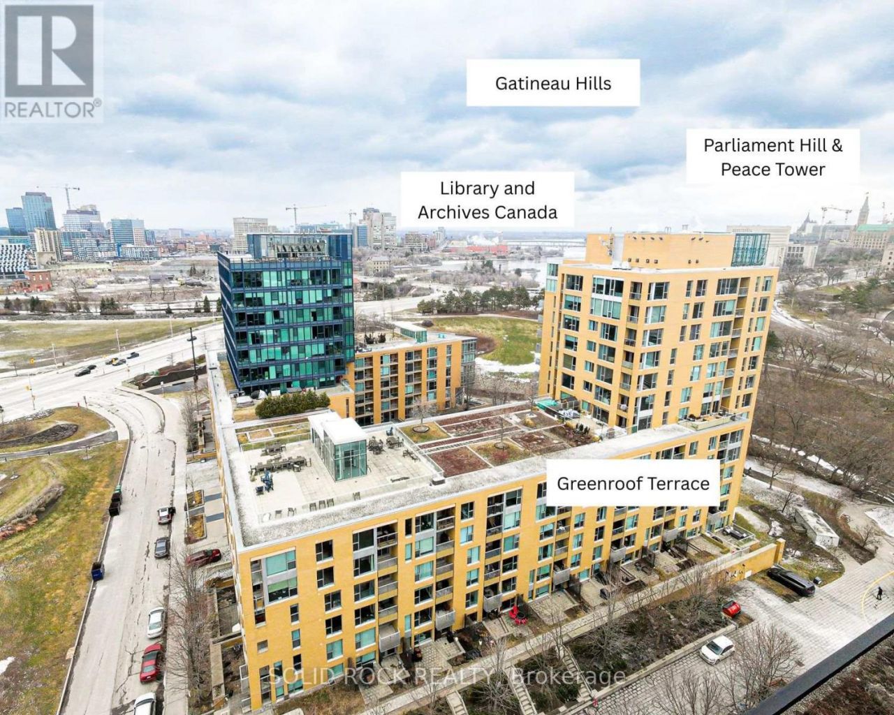 Welcome to this well maintained two-bedroom, two-bathroom, southwest-facing corner unit featuring 9-foot ceilings with spectacular sunset views of the building's green roof terrace overlooking LeBreton Flats and the Gatineau Hills. Enter to find a dedicated foyer with new ceramic tile leading to the enclosed laundry space with additonal built-in storage and LG wash tower. Turn left into the first bedroom, which features floor-to-ceiling windows for amazing natural light, hardwood floors, and a spacious closet. Once in the main living space, you'll find a tastefully designed living room, dining room and kitchen with a full size island ideal for entertaining. The kitchen features all stainless steel appliances and a newer Bosch dishwasher (2024) and updated refaced cabinetry (2026). Other kitchen updates include Zenith Madawaska quartz countertops and backsplash, the double-wide stainless steel sink and coordinating faucet (2025). The primary bedroom is sure to impress with a stylish accent wall, hardwood flooring, ample space, and a large closet. Enjoy the full sized walk-in shower and double sinks in the ensuite refreshed with two updated medicine cabinet mirrors, and a new light fixture (2026). The main bath features fresh Benjamin Moore paint, updated light fixture, mirror, shelf, faucet, hardware, and removable wall decals. This unit also includes an EV-ready space, with additional public EV charging available for a fee in the alley beside the building. No need to leave your balcony; you'll have front-row views of the future Ottawa Central Library, the Ottawa Bluesfest main stage, and Canada Day fireworks, including the Peace Tower. Enjoy the best of what this location offers with walkable and central access to all amenities! (id:52350)