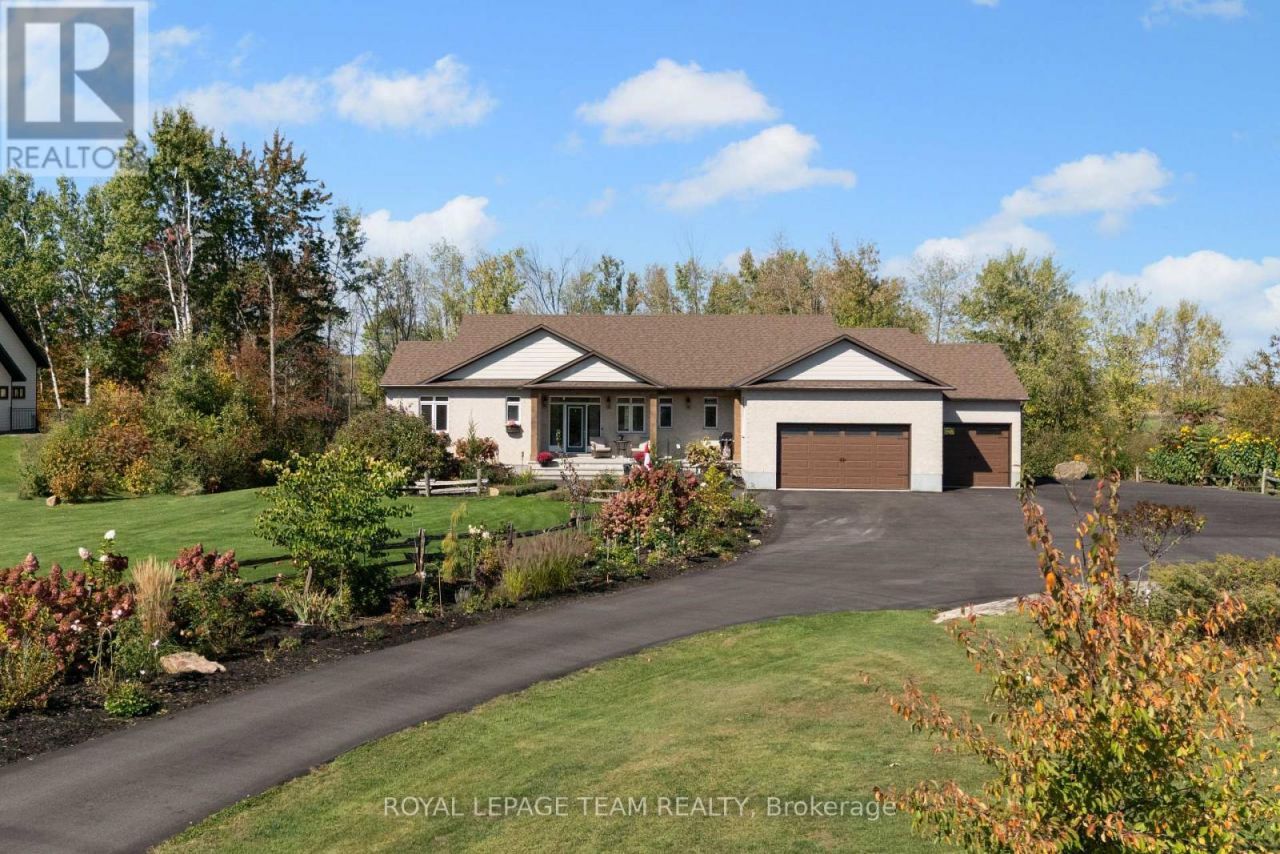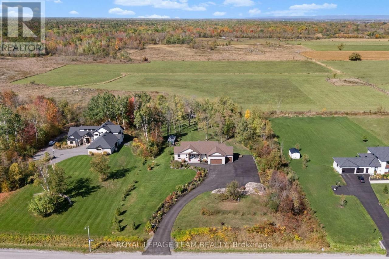 Welcome to 26 Synergy Way, an exceptional custom-built residence located in prestigious March Crest Estates. Nestled on over 2 private, treed acres in rural Kanata and backing onto open farmland, this property offers peaceful surroundings, and sweeping views of the Gatineau Hills. Built in 2018 by Grizzly Homes, this meticulously crafted home blends refined design, thoughtful functionality, and outstanding craftsmanship throughout. The main level features a bright, open-concept layout ideal for both everyday living and entertaining. A chef-inspired kitchen showcases quartz counters & backsplash, extra-tall stacked cabinetry, built-in microwave, pot filler, stainless steel appliances, and an impressive 10' x 5' island with extensive storage and seating. The dining area & vaulted great room offers designer lighting, pot lights, and a striking 12' real stone gas fireplace with reclaimed barn beam mantle. Sliding doors lead to a two-storey TREX composite deck with glass railings, perfect for enjoying panoramic views. Three bedrooms on the main level, including a stunning primary suite with vaulted ceilings, walk-in closet, and award-winning 5-piece ensuite with heated floors. A spacious mudroom/laundry area with built-ins offers convenient access to the heated triple-car garage. Wide-plank brushed white oak hardwood flooring throughout main level. The walk-out lower level includes a fully self-contained 1,600 sq.ft. in-law or nanny suite with two bedrooms, full kitchen, living room with electric fireplace, in-suite laundry, private garage entrance, access to a lower deck & park-like backyard. Additional unfinished space provides excellent storage. Extensive upgrades include an oversized paved driveway, Generlink 12,000W generator, irrigation system, landscaped gardens with mature trees & fruit plantings, firepit, shed, and meticulous ongoing maintenance. Stylish, versatile, and impeccably cared for, this one-of-a-kind home offers an extraordinary lifestyle opportunity. (id:52350)