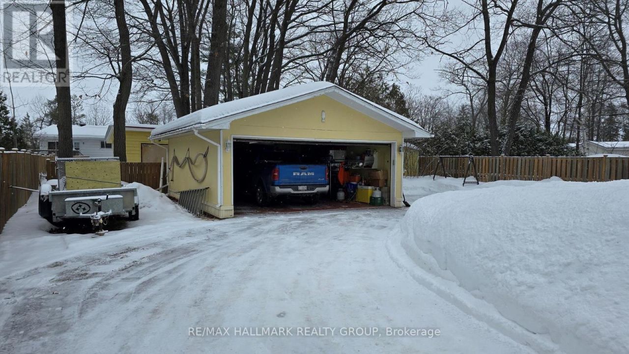 Nestled on a quiet street, this absolutely, delightful 2 Bedroom, 1.5 Bath Bungalow is situated on a beautiful 42' x 219' lot just steps from Auger's Beach & Torbolton Forest trails! The property features a detached 20' x 24' garage, 16' x 12' detached workshop & a 12' x 13' shed all with electricity ideal for hobbyists. Relax on the covered front porch that wraps around to another side deck with a ramp to the front yard plus steps down to access the back yard. Enjoy exceptional privacy with generous yard space and a pretty back patio creating the perfect outdoor sanctuary. Inside, this deceivingly spacious & charming home is a great layout complete with easy care laminate flooring on the main level. The Living Room has patio doors to the inviting covered deck plus a stunning bow window fills the space with natural light. The well-equipped kitchen spoils the cook with lots of cupboard and counter space and overlooks the Living Room with a handy pass through to the Dining Room. The 3 piece bath has a walk-in shower with built-in bench and a handy laundry area with stackable wash & dryer so all your needs are on the main level. Both, the Primary & Second Bedrooms are large having closets equipped with lighting. The Basement has a separate access to the backyard, a Napolean natural gas fireplace in rec room area, a 2 piece bathroom, storage room, another laundry area plus a cedar closet. Updated with vinyl windows on main level & the patio door has built-in blinds. Natural gas furnace & hot water tank 2014 approx. New washer & dryer 2026. Roof shingles on house & garage approx. 10 years old. Note this home is equipped with a Generac & central air. Come take a look at this truly incredible home & property! (id:52350)