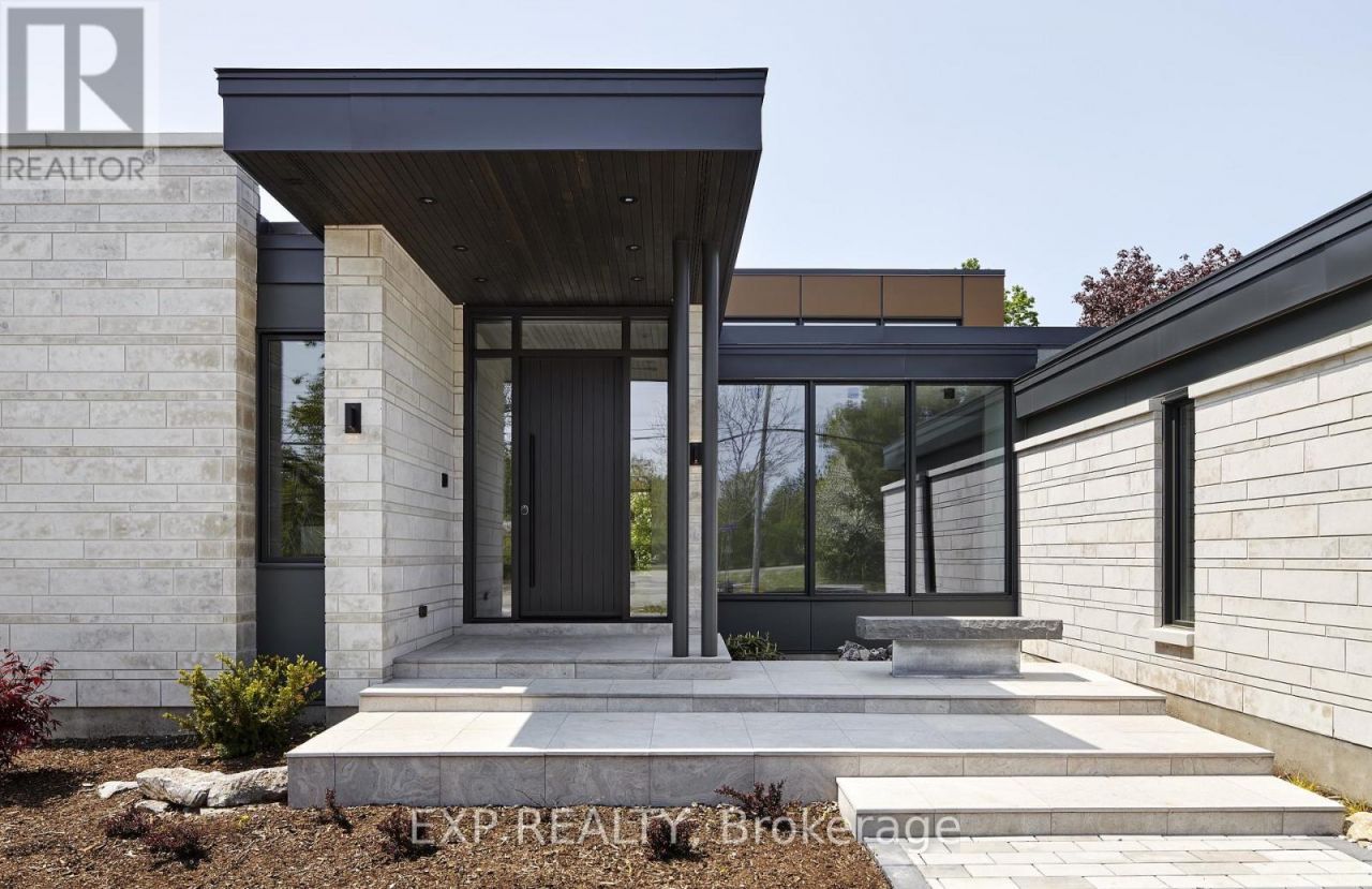 Discover the unexpected at 32 Clovelly-an exceptional residence whose understated exterior reveals over 8,000 sq ft of refined living in prestigious Rothwell Heights. Celebrated as Canada's Best NetZero Home (2024), this architectural showpiece sits on a private ravine lot (200' x 150') framed by natural limestone and a striking 20' cliff backdrop. Inside, five spacious bedrooms, five elegant baths, soaring 14' ceilings, and a dramatic four-sided fireplace anchor sweeping treetop views through floor-to-ceiling windows. Intelligent, sustainable, and quietly luxurious, this home offers discerning local and international buyers a rare blend of privacy, scale, and modern design excellence.Across from Quarry Park,near NRC,CSIS & Montfort Hospital.Minutes to the LRT and renowned Colonel By High School with IB program. (id:52350)
