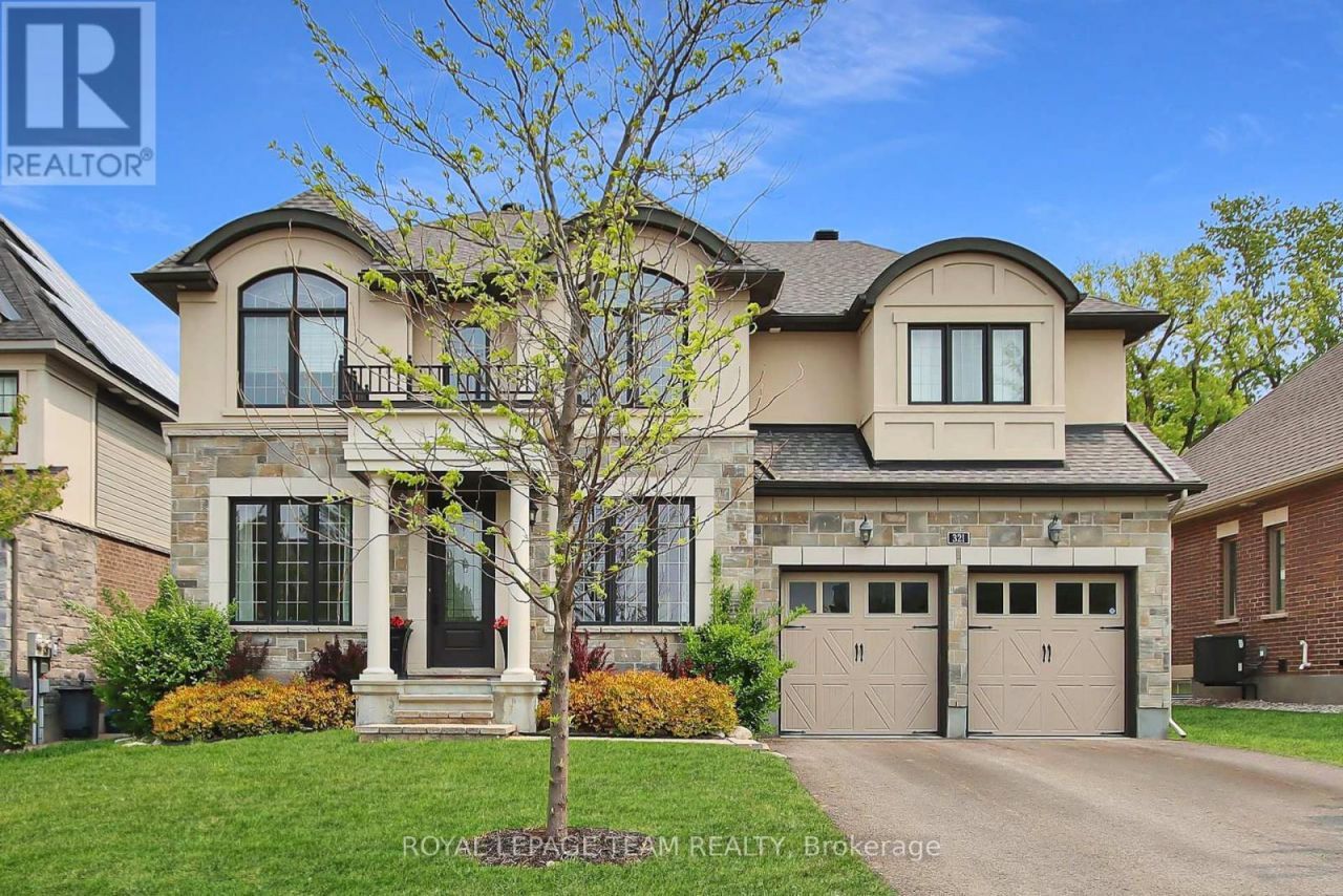 Exceptional executive home featuring 4 bedrooms and 5 bathrooms, located in the highly desirable Mahogany community in Manotick, with a serene backdrop of trees. This residence boasts a thoughtful layout and high-quality finishes, making it perfect for entertaining! The impressive family room, with soaring 17-foot ceilings and a wall of windows offering views of nature, is highlighted by a cozy fireplace. The stunning gourmet kitchen is sure to impress any chef! No expense has been spared in this luxury home, with an L-shaped island that includes a breakfast bar with seating, a 48 gas range, quartz countertops adorned with a stylish backsplash, custom millwork, a walk-in pantry, and ceiling-height cabinets complete with pots and pans drawers, along with a coffee bar. The foyer is elegantly flanked by both the living and dining rooms, featuring a convenient Butler's pantry/Servery offering upper and lower cabinetry, quartz counter, wine and beverage fridge. A main floor home office/den with a gas fireplace adds both functionality and charm. Throughout the main and upper levels, you will find beautiful hardwood flooring and a striking open hardwood staircase that connects the upper and lower levels. Upstairs, there are four spacious bedrooms, each equipped with walk-in closets. Two of the bedrooms share a Jack and Jill bathroom, while the third bedroom offers a four-piece ensuite bath with quartz countertop & vessel sink. The primary retreat features a sitting area, a dual-sided gas fireplace enjoyed by the bedroom and a generous five-piece ensuite with dual sinks, a custom shower, and a separate tub and watercloset. The professionally finished basement includes a gorgeous Home Theatre room, bar, lounge area, recreation room with built-in fireplace, gym, and ample storage. The expansive rear yard is complete with an entertaining-sized deck, which is perfect for outdoor enjoyment. Prepare to fall in love! (id:52350)