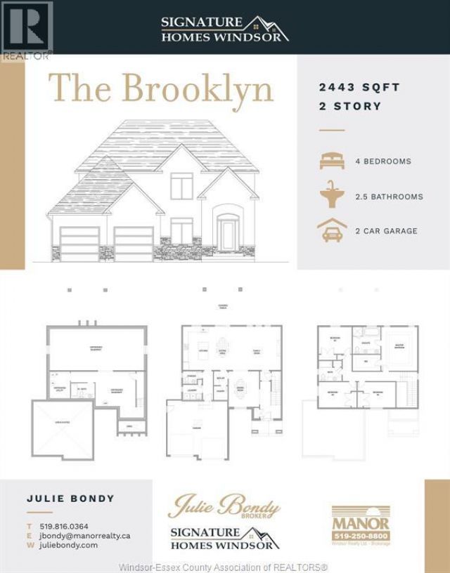 WELCOME TO SIGNATURE HOMES WINDSOR THE BROOKLYN AT TRINITY WOODS LASALLE SURROUNDED BY NATURE AND CONSERVATION AREAS. THIS 2 STY DESIGN HOME IS APPROX. 2470 SF AND FEATURES GOURMET KITCHEN W/LRG CENTRE ISLAND FEATURING GRANITE THRU-OUT AND WALK IN KITCHEN PANTRY AND BUTLER PANTRY FOR ENTERTAINING WITH SO MUCH CABINTRY! OVERLOOKING OPEN CONCEPT FAMILY ROOM WITH WAINSCOT MODERN STYLE FIREPLACE. 4 UPPER LEVEL BEDROOMS. STUNNING MASTER SUITE WITH TRAY CEILING, ENSUITE BATH WITH HIS & HER SINKS WITH CUSTOM GLASS SURROUND SHOWER WITH FREESTANDING GORGEOUS TUB. SPRING 2024 POSSESSION. SIGNATURE HOMES EXCEEDING YOUR EXPECTATION IN EVERY WAY! TRINITY WOODS LOTS AVAILABLE LOTS 12-14 OKE, LOTS 16-17 MAYFAIR SOUTH. PHOTOS AND FLOORPLANS NOT EXACTLY AS SHOWN , PREVIOUS MODEL. HST REBATE FOR APRIL 1 2026 TO MARCH 31, 2027 IS REFLECTED IN NEW LIST PRICE ALL REBATES ASSIGNED TO BUILDER. . $6000 LOT PREMIUM FOR LOT 12 APPLIES TO LIST PRICE. (id:52350)