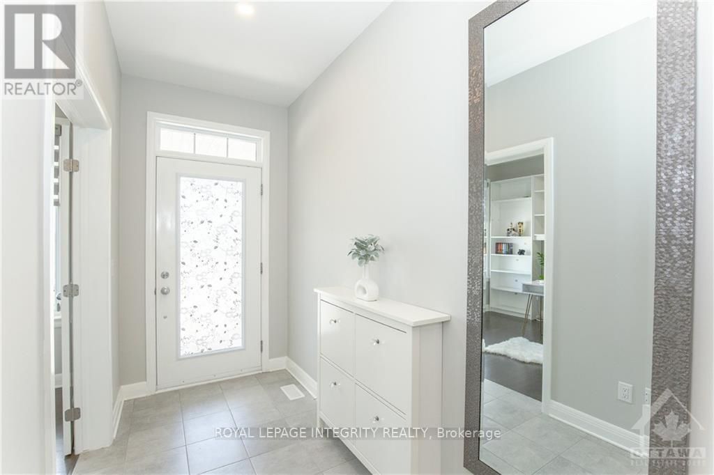 Stunning pond-view home in the highly sought-after Richardson Ridge community. This beautifully upgraded Uniform-built double garage single-family home offers 4 spacious bedrooms and 3.5 bathrooms, including 2 ensuites, along with a versatile main floor den, ideal for today's modern family lifestyle. The bright, sun-filled interior is enhanced by professionally landscaped front and backyard spaces. The main level features an impressive open-concept design with 9 ft smooth ceilings, elegant oak hardwood flooring, and pot lights throughout. A dramatic open-to-above dining room creates a grand first impression, while the inviting family room showcases oversized windows and a stylish fireplace. The chef-inspired kitchen is fully upgraded with quartz countertops, high-end cabinetry, pots and pans drawers, a walk-in pantry, stainless steel appliances, modern lighting, and a large island with a flush breakfast bar, perfect for entertaining. Hardwood stairs lead to the second level, featuring a luxurious primary retreat with coffered ceiling, a walk-in closet with Pax shelving, and a spa-like 5-piece ensuite. Three additional generously sized bedrooms include a second ensuite and a full bathroom. The basement offers laundry and abundant storage space. Step outside to a professionally designed backyard oasis complete with an interlock patio, deck, and covered gazebo, ideal for relaxing or hosting gatherings. Located in a family-friendly neighborhood with top-rated schools including W. Erskine Johnston Public School, Earl of March Secondary School, St. Gabriel Catholic Elementary School, and All Saints High School. Walking distance to parks and transit, and just minutes to Kowloon Market and all amenities. Photos were taken prior to current tenant occupancy. The house is in great conditions and well maintained . N11 Signed and tenants will move out by the end of June. (id:52350)