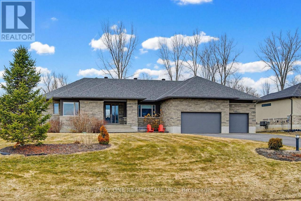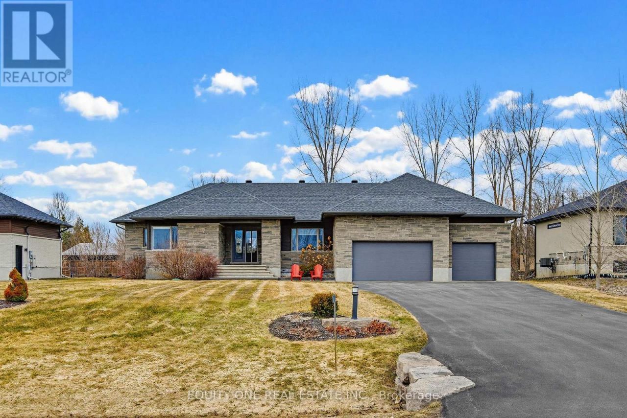 Welcome to this spectacular 4+1 bedroom, 4 bathroom bungalow in the highly sought-after Lakewood Trails community of Greely where modern luxury meets peaceful estate living. Built by Mackie Homes, this beautifully designed residence offers exceptional craftsmanship, thoughtful upgrades, and an ideal layout. The main level features a bright, open-concept design anchored by a stunning great room with a cozy natural gas fireplace, seamlessly flowing into a designer kitchen with quality cabinetry, stone countertops, and generous prep space ~ perfect for hosting family and friends. Designed for privacy, the primary suite is set on one side of the home, offering a peaceful retreat complete with his & hers walk-in closets and a luxurious ensuite featuring a freestanding soaker tub, glass shower, and heated floors. On the opposite side of the home, you'll find three additional well-sized bedrooms and a full bathroom-ideal for family living or guests. A spacious mudroom with built-in cabinetry provides excellent everyday storage and organization, while the main floor laundry room adds convenience and functionality.The fully finished lower level expands your living space with a large recreation area, dedicated exercise space, additional bedroom, and full bathroom. A separate theatre room with a second gas fireplace creates the perfect setting for movie nights and entertaining ~ ideal for multi-generational living or a private retreat. Car enthusiasts and families alike will appreciate the heated oversized 3-car garage, complete with built-in shelving for storage and direct access to the basement ~ an incredibly practical feature. Storage is abundant throughout the home, making it easy to stay organized and clutter-free. Outside, enjoy a beautifully landscaped backyard, rear patio, and upgraded exterior featuring stone and brick finishes, all set within one of Greely's most desirable communities featuring a community rec centre, pool and gym. Association fee of $350/year. (id:52350)
