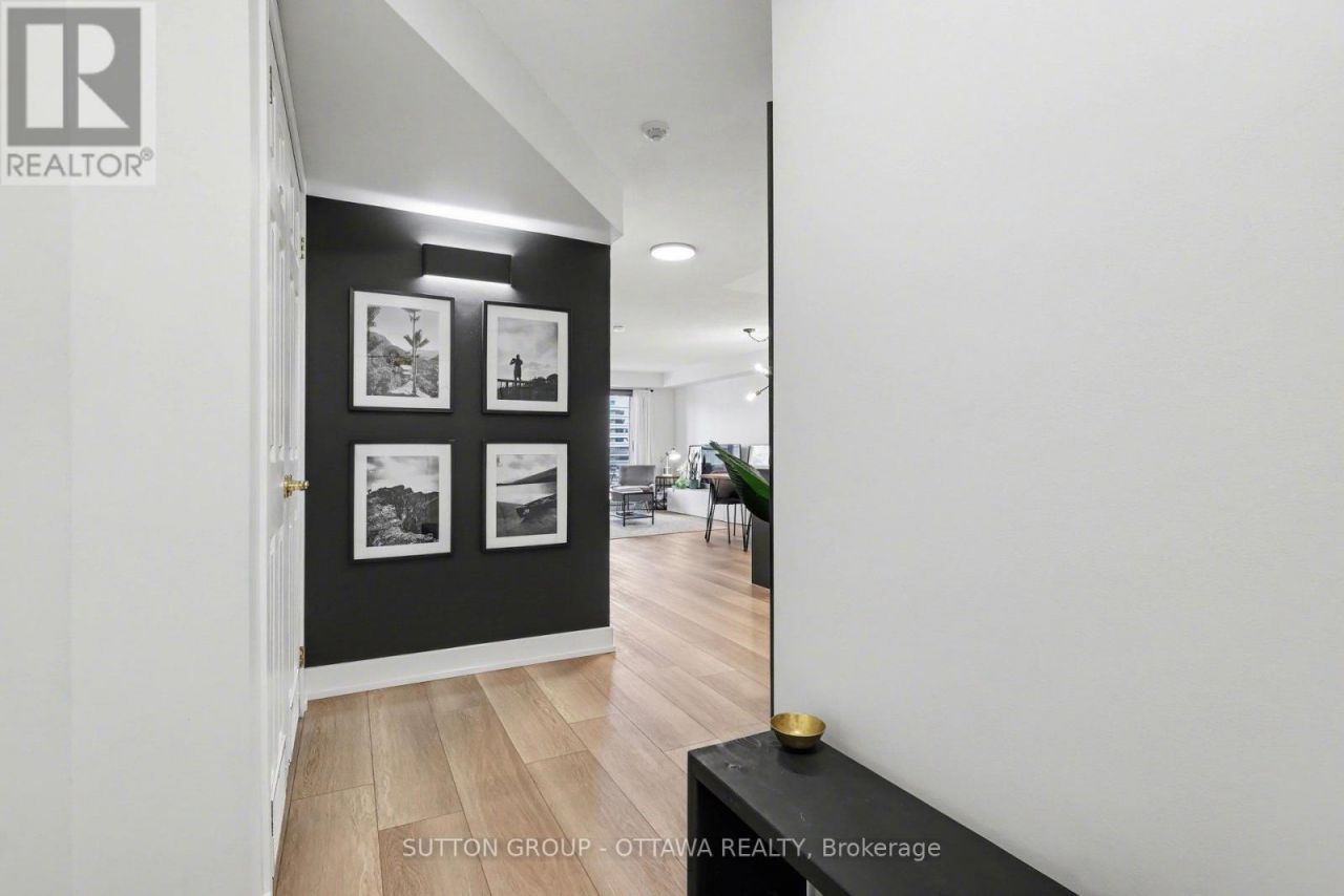 OPEN HOUSE: Saturday April 4th, 2-4PM. Some of the best condos in Centretown are hidden gems. Welcome to Unit 703 at The Strand. Step inside and you'll find one of the most thoughtfully renovated 1-bedroom condos downtown - a fully transformed space with value that is hard to beat. The kitchen was redesigned in 2021: enlarged storage, floor-to-ceiling white flat-panel cabinetry, quartz countertops, porcelain backsplash, a striking dark island with built-in dishwasher, and a full suite of stainless appliances. Wide-plank premium flooring (2021) runs seamlessly throughout, and the bathroom features a refreshed vanity with quartz countertop. This is not a cosmetic refresh it's a genuine, high-quality renovation. At 715 sq ft, the open-concept layout is one of the larger 1-bedroom footprints you'll find downtown, with room for a proper dining table, a full living room setup, and a private balcony. The bedroom stretches nearly 15 feet, offering plenty of room for a dedicated home office setup. The unit also includes underground parking and a storage locker - many comparable listings in this price range simply don't offer. Condo fees of $466/month cover heat, cooling, and water - among the most competitive you'll find downtown. What you get with those fees: a BBQ courtyard, bike storage, car wash area, party room, and nine visitor parking spaces. The building has also been actively investing in infrastructure: new HVAC (2021), upgraded entrance (2025), new entry system (2026), garage improvements (target April 2026), and elevator modernization (target Fall 2026). Located at Somerset and Kent in the heart of Centretown, you're steps from a grocery store, Bank Street restaurants and cafés, the Rideau Canal, and the Glebe. Lyon LRT is a short walk away.An exceptional opportunity for first-time buyers, professionals, or investors who want a move-in-ready downtown condo with real upgrades, real space, and real value. (id:52350)