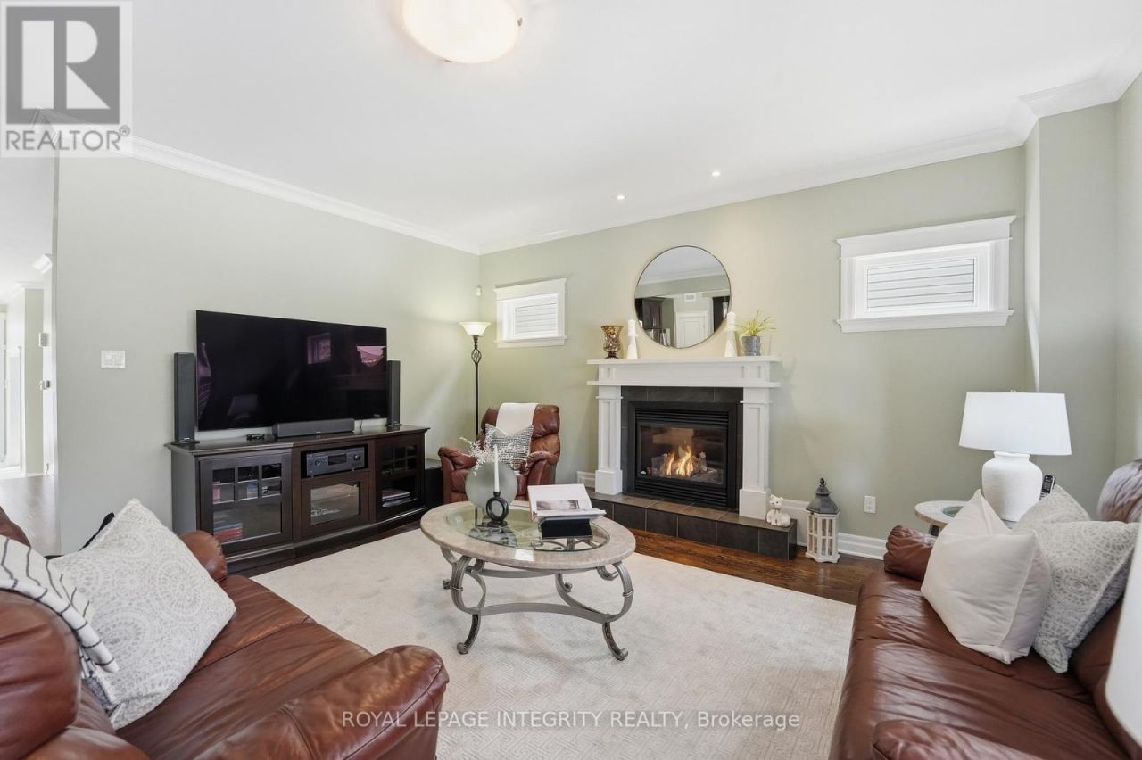 Welcome to this luxury custom-built home tucked away on a quiet, no-through street just steps from everyday amenities. Thoughtfully designed with a focus on comfort and livability, this residence features well-proportioned rooms on every level. The main floor offers an inviting layout anchored by a living room with cozy fireplace and a beautifully appointed kitchen with heated floors. The kitchen features a large granite island, an adjacent relaxed lounge area, and a walk-in pantry, creating a space that is as functional as it is refined. An elegant dining room provides the perfect setting for hosting, while a main floor office just off the front entrance offers a convenient and private space to work from home. Upstairs, you'll find four generous bedrooms, including a primary suite with large walk-in closet, fireplace, and ensuite. A second-floor laundry room adds everyday convenience to this level. The fully finished basement extends the living space even further, offering a fifth bedroom, a fourth bathroom, and a versatile family room ideal for entertaining and relaxing. Designed for both function and enjoyment, the home includes three fireplaces, heated floors in the kitchen and select bathrooms, central vacuum, a lawn sprinkler system, and an oversized garage. A covered rear porch provides the perfect setting to unwind or enjoy quiet mornings outdoors. Lovingly maintained and move-in ready, this home stands out for its exceptional layout, generous space on every level, and thoughtful upgrades throughout-delivering a seamless blend of luxury, comfort, and everyday practicality in one of Ottawa's most desirable neighbourhoods. (id:52350)
