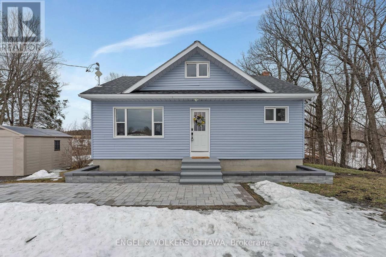 Welcome to this charming and cozy country gem! Nestled in a peaceful setting, this delightful home backs onto a creek in the ravine, offering exceptional privacy with no rear neighbours and picturesque farmland views out front. Surrounded by mature trees, nature can be enjoyed from nearly every window. The home features 3 bedrooms and 1.5 bathrooms, with the primary bedroom conveniently located on the main floor beside a full bathroom. The bright eat-in kitchen is perfect for everyday living and opens to a lovely deck - ideal for summer BBQs or relaxing evenings around the fire with family and friends. A fully finished basement provides versatile additional living space, perfect for a home office, playroom, or recreation room. Recent updates include a new roof, new siding, new electrical service, newly refinished hardwood flooring on the main level, and fresh paint throughout. Located just minutes from the Ottawa River and close to the ferry to Quebec, this home offers the best of country living with convenient access to nearby amenities. Whether you're looking for the perfect starter home or a comfortable place to downsize with main-level living, this property is an excellent opportunity. Enjoy the benefits of an affordable detached home with land in the country! You won't want to miss this one! (id:52350)