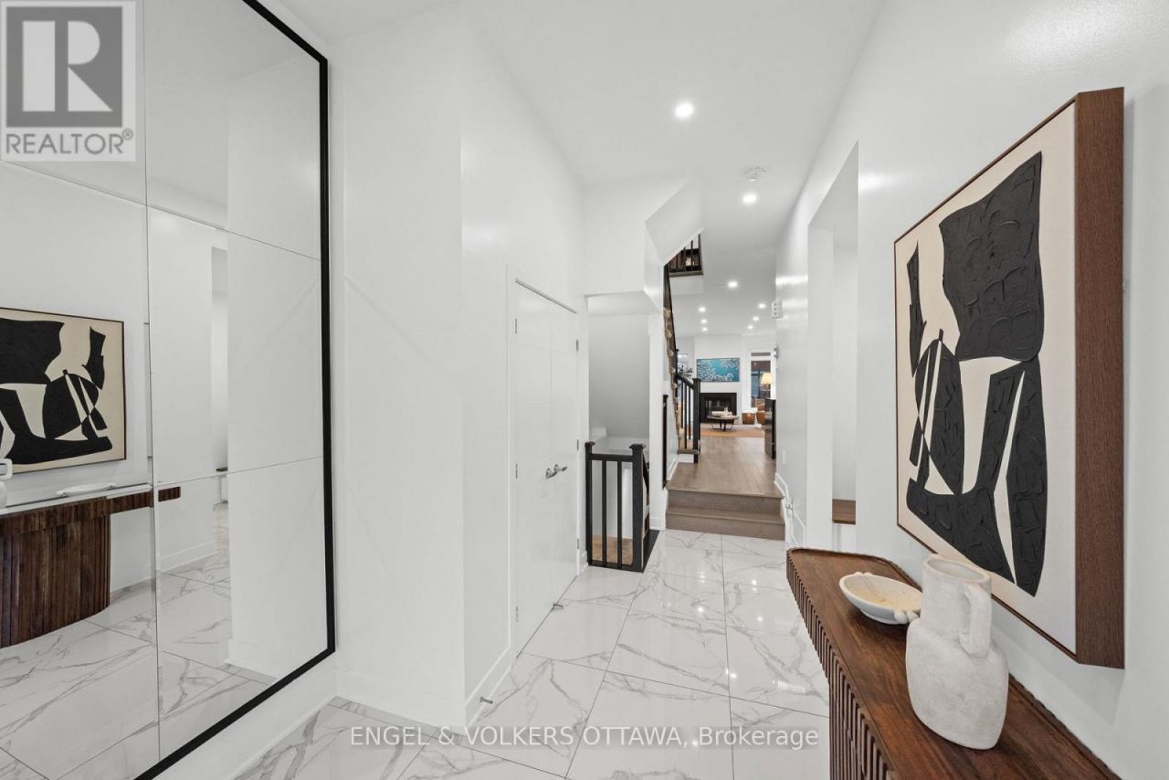 This meticulously maintained end-unit Urbandale townhome in Findlay Creek has been thoughtfully updated with fresh paint, custom wainscotting and accent walls, updated electrical features, new basement flooring, and a massive redesigned deck. The main level features striking tile flooring that leads into a bright, open-concept living, dining, and kitchen space with recessed lighting and wide-plank hardwood throughout. The kitchen features a large waterfall-edge island, sleek cabinetry, stainless steel appliances, a dedicated pantry, and a newly updated backsplash that adds a refined finishing touch. The dining area is filled with natural light and enhanced by elegant picture-frame wall moulding and direct access to the backyard through sliding glass doors. The adjoining living room is anchored by a modern gas fireplace and framed by tall windows. Upstairs, the spacious primary suite has a walk-in closet and a 4-piece ensuite featuring a soaker tub and walk-in shower. Two additional bedrooms are both generously sized with large windows and versatile layouts, ideal for family and guests, while a cozy den makes for a great office space. A 4-piece bathroom and a convenient second-floor laundry room with built-in cabinetry add to the day-to-day functionality of this level. The cozy lower level is complete with recessed lighting, updated flooring, and a 2-piece bathroom, making it the ideal space for a media room or an extra living space. The fully fenced, low-maintenance backyard shines in the summer months, featuring an expansive, newly built wood deck perfect for dining, lounging, and entertaining. Located in a quiet nook of a family-friendly neighbourhood, this home is near walking paths, parks, and only a few minutes from schools, a range of daily amenities and The Meadows Golf Club. Ideal for young families and professionals, this home delivers a well-rounded lifestyle in one of Ottawa's most desirable neighbourhoods. (id:52350)