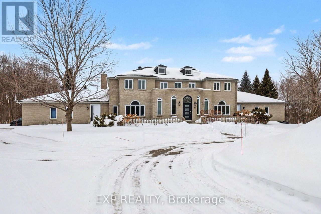 Welcome to your private estate in the heart of Rideau Forest, set on approximately 2 acres surrounded by mature trees and manicured grounds. Offering over 5,500 sq ft above grade, this impressive all brick two story home features 5 bedrooms and 7 bathrooms, with every bedroom complete with its own ensuite. A grand vaulted foyer sets the tone, leading into expansive principal rooms designed for both everyday living and large scale entertaining. The formal dining room comfortably accommodates twenty guests, while the kitchen and breakfast area overlook the rear gardens and inground Gunite pool, creating a seamless indoor outdoor connection. The main level includes multiple living spaces, a den or optional bedroom, and elegant finishes throughout including hardwood flooring and crown moulding. Upstairs, the primary suite is a retreat of its own, featuring a marble appointed 5 piece ensuite, generous walk in closet, and a private sitting area framed by oversized windows. The fully finished lower level adds exceptional versatility with a sprawling recreation room, media space, full bath, additional bedroom, and direct access from the garage, ideal for extended family or guests. Car enthusiasts and collectors will appreciate the rare dual triple car garages with inside entry, offering parking for six vehicles. Major updates include roof, windows and exterior doors replaced in 2018, along with two high efficiency furnaces, two A/C units, and two hot water tanks. Outdoors, enjoy a 36' x 17' inground pool enclosed by elegant wrought iron fencing, expansive interlock, and lush lawns that offer both privacy and presence. A distinguished residence in one of the city's most sought after estate communities. (id:52350)