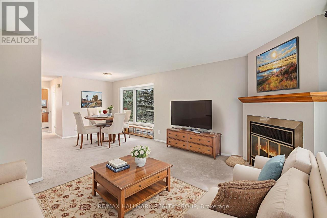 Well maintained, end-unit 2-bedroom, 2 bath upper terrace condo offering a bright interior in a peaceful, forest-backed setting of Convent Glen. The main level features an open-concept living/dining area with a cozy wood-burning fireplace and access to a private balcony with tranquil green-space views. A sun-filled eat-in kitchen and convenient powder room complete the main floor. Upstairs you'll find a sky light over the staircase & upper hallway, spacious primary bedroom with wall-to-wall closet space and its own private balcony, a bright second bedroom, full bathroom, and in-unit laundry/storage area. Newer carpets on the upper level, newer full sized washer/dryer and freshly painted throughout. Located steps from parks, playgrounds, transit, shops and the Ottawa River pathways, with easy access to Place d'Orleans, Petrie Island Beach and the LRT station. A perfect low-maintenance home in a highly desirable, nature-surrounded neighborhood. (id:52350)