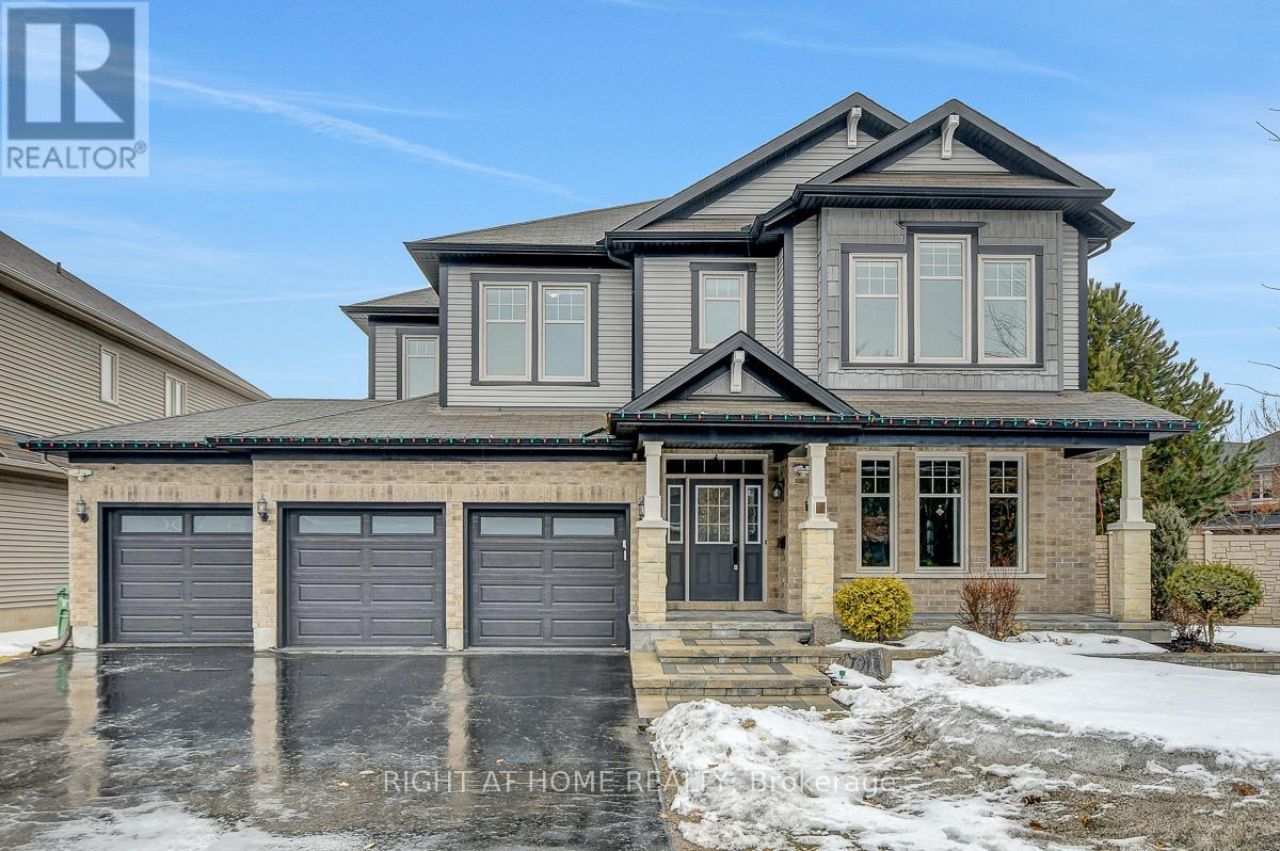 Welcome to this stunning 2 storey home set on a premium oversized corner lot in one of Ottawa's most desirable family-friendly communities. This beautifully maintained residence offers exceptional curb appeal, a rare triple car garage, and over-the-top upgrades that truly set it apart. Step inside to a bright and elegant main floor featuring upgraded hardwood flooring, a thoughtfully designed layout, and a high-end kitchen complete with custom cabinetry, granite countertops, stainless steel appliances, and a sleek hood vent. The attention to detail continues throughout the home, with quality finishes, upgraded fixtures, and large windows dressed with premium Hunter Douglas blinds, filling the space with natural light.Upstairs, you'll find 4 spacious bedrooms with newly upgraded hardwood flooring throughout. The primary suite offers a luxurious retreat with a custom walk-in closet organization system and a private ensuite bath. The remaining bedrooms are exceptionally well served by two additional 3-piece bathrooms, providing comfort and convenience for family and guests alike. A second-floor laundry room adds everyday practicality, making daily routines seamless and efficient. The fully finished basement offers incredible additional living space, including a large recreation room, a full bathroom, and a generously sized bedroom-perfect for guests, extended family, or a private retreat.Outside is where this home truly shines. The backyard is a private oasis, fully fenced with composite fencing and professionally landscaped. Enjoy summer days on the multi-level composite deck with gazebo, unwind in the hot tub, or relax among mature trees and thoughtfully designed outdoor spaces. The front yard features extensive interlock landscaping, enhancing the home's already impressive curb appeal. This is a rare opportunity to own a meticulously upgraded, move-in-ready home that offers space, luxury, and lifestyle-all in one exceptional package. (id:52350)