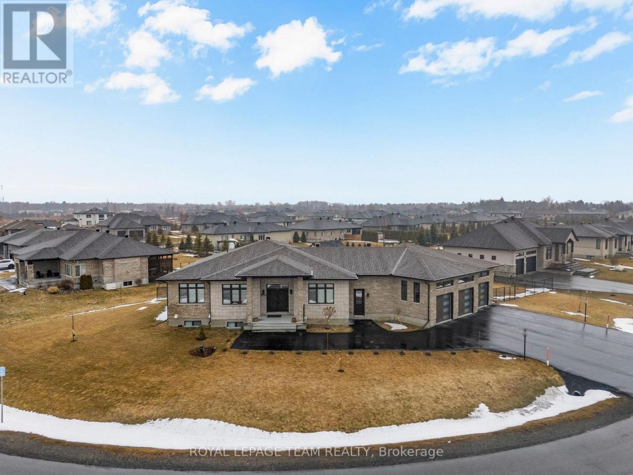 Welcome to this stunning custom bungalow in the sought-after community of Greely, where luxury living meets modern design. Boasting one of the largest bungalow floor plans in the neighbourhood, this sprawling executive residence offers over 4,700 sq ft of living space, a true 3-car attached garage, and sits on a beautifully landscaped and fully fenced half-acre lot. From the moment you arrive, the quality and craftsmanship are undeniable. A grand foyer welcomes you with soaring 11-foot ceilings, designer light fixtures, pot lights, stylish accent walls, and oversized 8-foot interior doors throughout, flowing seamlessly into the breathtaking open-concept kitchen, living, and dining area.The designer kitchen is the centrepiece of this home and an entertainer's dream - anchored by an expansive island, quartz countertops, chic tile backsplash, top-tier stainless steel appliances, a massive walk-in pantry, and abundant cabinetry.The main level offers three generous bedrooms and two spa-inspired 5-piece bathrooms. The primary suite is a true hotel-inspired sanctuary featuring a walk-in closet with custom shelving, a luxurious ensuite with oversized soaker tub, and direct access to the covered rear patio.The fully finished lower level features two additional bedrooms, a flexible den that could serve as a 6th bedroom, a beautifully finished 5-piece bathroom, full second kitchen, dedicated laundry, and spacious rec area. With its own private entrance, this level is a turnkey solution for multi-generational living or a high-income in-law suite.The attached 3-car garage features heated flooring & a fourth door accessible from the backyard - ideal for recreational vehicles or a workshop. The covered rear porch overlooks a peaceful, fully fenced backyard, perfect for summer entertaining. The yard is equipped with a sprinkler system. Properties of this calibre and craftsmanship are genuinely rare. The home is also equipped with a generator for that extra peace of mind. (id:52350)