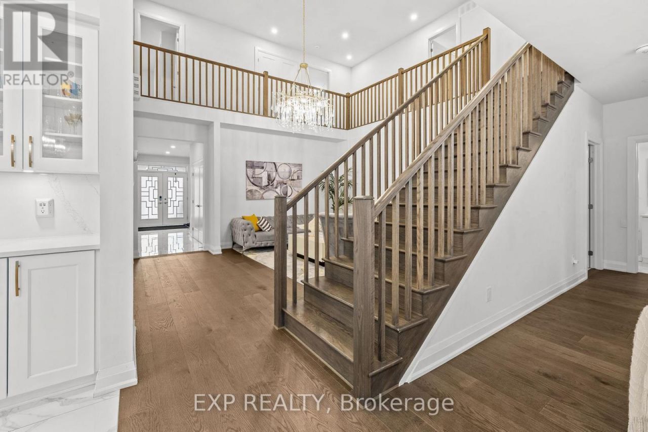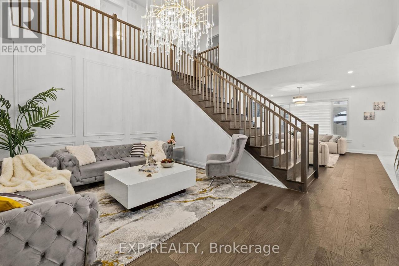 ARCHITECTURAL FLOW AND EVERYDAY LUXURY meet in this masterfully designed residence where every floor tells a story of scale and connectivity. The centerpiece is a stunning OPEN-TO-ABOVE LIVING ROOM anchored by a beautiful GOLDEN CHANDELIER that highlights the home's incredible height, while MAPLE WRAP-AROUND RAILINGS from the second level ensure every room feels connected to the heart of the home. The kitchen is a true showstopper, featuring a MASSIVE ISLAND WITH WATERFALL EDGES ON BOTH SIDES, seamlessly BUILT-IN APPLIANCES, and an endless array of custom drawers and pull-outs. Designed for the modern professional, the main floor offers TWO DENS PLUS A FULL BATHROOM, providing total flexibility for DUAL HOME OFFICES or MULTIGENERATIONAL LIVING. Upstairs, the layout is impressively spacious with FIVE BEDROOMS AND THREE FULL BATHS, including a luxurious 5-PIECE ENSUITE, a SECOND ENSUITE, and a JACK-AND-JILL BATH, while the primary suite features a WALK-IN CLOSET THE SIZE OF A BEDROOM. The FINISHED BASEMENT is built for entertainment with a MOVIE SECTION, PLAY AREA, AND LOUNGE, plus a massive unfinished wing for a HOME GYM OR STORAGE. Step outside to a LARGE DECK AND FULLY FENCED YARD in prime RIVERSIDE SOUTH, located minutes from the RIDEAU RIVER trails and boating, the LRT, and the future TOWN CENTRE. YOUR SEARCH ENDS HERE. (id:52350)