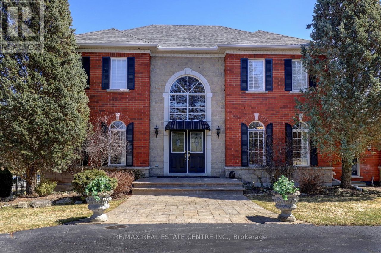Welcome home. Set on a premium lot in a sought-after Halton Hills enclave, 8 Deer Run Crescent offers a rare opportunity to own a spacious executive residence in an established community. With timeless curb appeal and a private backyard featuring a pool, cabana, and mature trees, the exterior provides exceptional outdoor living. The property spans nearly 4 acres, including a portion of protected conservation land, offering a natural setting with added privacy. The home offers approximately 3,100 sq ft above grade, plus a finished walkout lower level, with a functional layout and generous principal rooms, presenting an opportunity to personalize the space. The main level features 9-ft ceilings, hardwood flooring, crown moulding, and a double-sided fireplace. The kitchen includes granite counters, travertine backsplash, built-in appliances, and walkout to a deck with gas BBQ hookup and awning. A mudroom with laundry and access to the oversized 3-car garage adds convenience. Upstairs offers four bedrooms, including a primary suite with fireplace, walk-in closet, and 5-piece ensuite. The finished walkout lower level provides additional living space with large windows, fireplace, wet bar, and bedroom with ensuite, suitable for extended family or guests. Additional features include a thermal-heated pool, pool house, landscaped grounds, irrigation system, and recent updates such as roof and eavestrough improvements. Conveniently located near Milton, Guelph, and Acton, with access to amenities, schools, and commuter routes. (id:52350)
