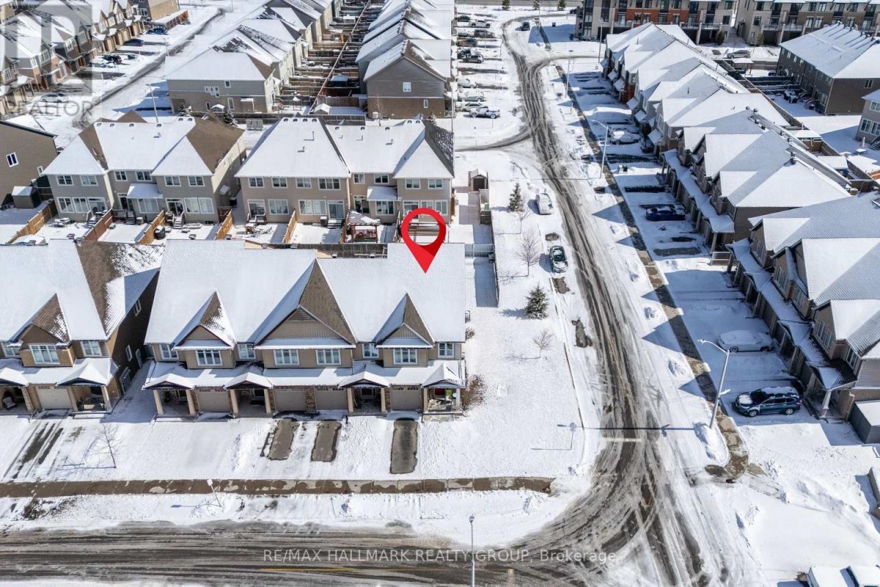 Open house Sunday April 5th 2-4 pm- Beautifully upgraded end-unit townhome on a premium corner lot in the heart of Findlay Creek, offering over 2,200 sq ft of finished living space and exceptional privacy with green space beside the home. This modern, open-concept layout is filled with natural light thanks to additional end-unit windows and features high-end finishes throughout. The main floor showcases hardwood flooring, a Modern kitchen with quartz countertops, stainless steel appliances, and extensive cabinetry, flowing seamlessly into spacious living and dining areas ideal for everyday living and entertaining. Inside entry from the garage leads into a practical mudroom with closet space, perfect for keeping things organized year-round. Upstairs, you'll find three well-sized bedrooms including a large primary retreat with walk-in closet and a 5-piece ensuite featuring a soaker tub and separate shower, along with convenient second-floor laundry. The fully finished basement adds valuable living space with a cozy gas fireplace, ideal for a family room, home office, or media area. Enjoy a massive backyard rarely found in townhomes, along with the added curb appeal of full side brick-a premium builder upgrade. Located just steps to parks, top-rated schools, walking trails, shopping, and transit, this is a move-in ready home in one of Ottawa's most desirable family-friendly communities. Book your private showing today. (id:52350)