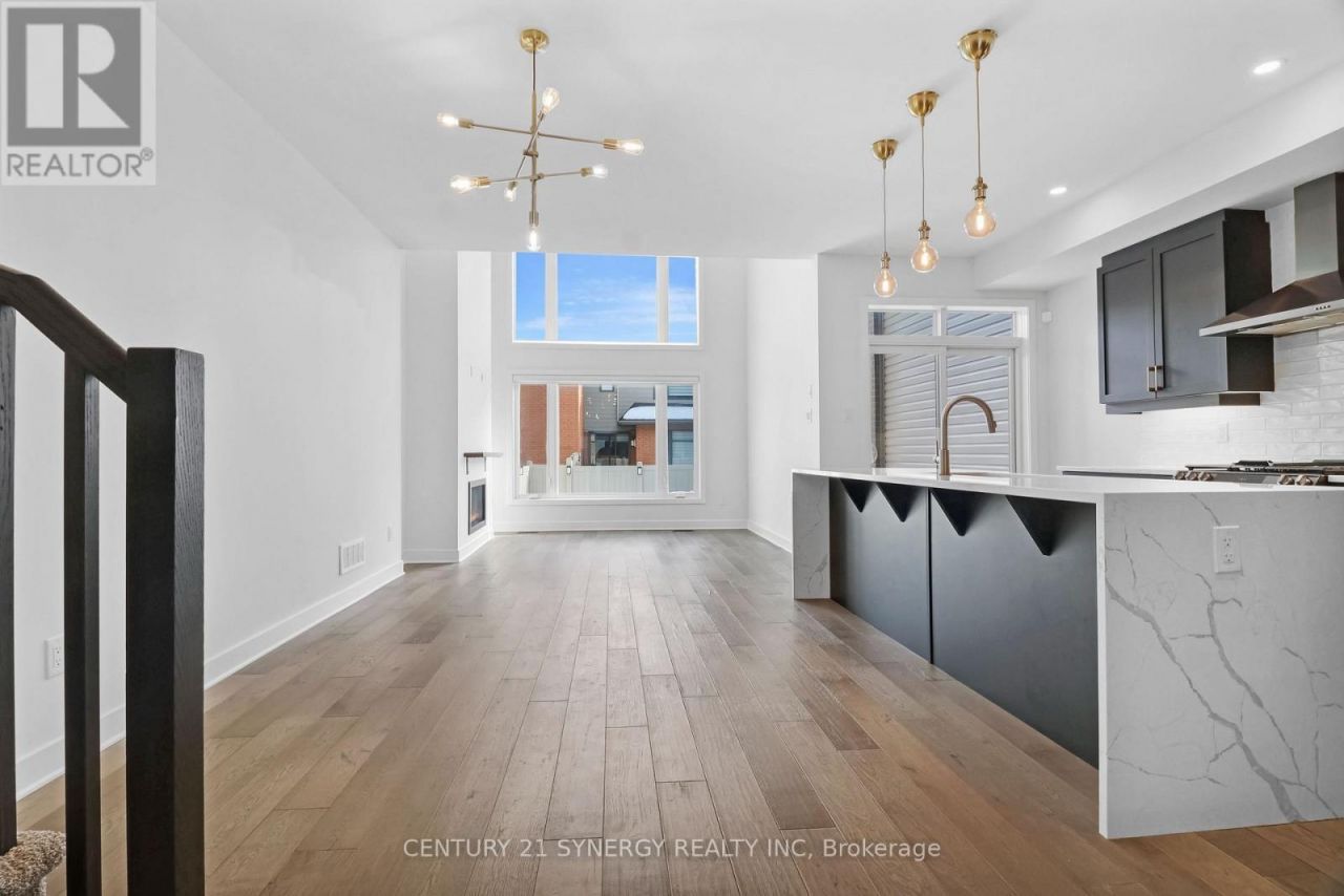 Welcome to 92 Longworth Avenue, an exceptional Urbandale Calypso in the heart of Findlay Creek, thoughtfully upgraded and meticulously maintained. This 3 bedroom, 2.5 bath home blends refined design with everyday functionality, offering a sun-filled open concept layout with 9ft ceilings and a fully finished basement. Walk into a spacious entryway including large-format matte black tile, custom built-in mudroom and powder room. The main level is elevated with elegant extra wide hardwood flooring, complimented by brass fixtures and matte black cabinetry with soft-close details, waterfall quartz countertop and a gas stove with black stainless steel appliances. The open-concept layout is spacious enough to comfortably seat eight at the dining table, while the living room soars to 18-foot ceilings. With the fireplace thoughtfully positioned on the left to maximize natural light, this is a space truly designed for entertaining. Upstairs, the primary suite is complemented by a spacious walk-in closet and a beautifully finished ensuite designed for daily comfort with a double vanity, an extra linen closet, marble flooring and an emerald green shower with brass finishes. Two generously sized secondary bedrooms facing west, a stylish full bath maintaining complimentary finishes throughout the home, and a thoughtfully positioned laundry room complete this level with both elegance and practicality. The lower level delivers impressive additional living space, with a bathroom rough in and ample of room for storage. Outside, you will find a generous two car driveway with a garage parking. An expansive wood deck anchors the backyard, surrounded by solar lighting and artificial grass that defines an inviting outdoor entertainment space. This home is the busy professional's dream, combining modern design, functional home living, and effortless maintenance, all in a thoughtfully crafted space you'll love coming home to. *Please note some photos have been virtually enhanced (id:52350)